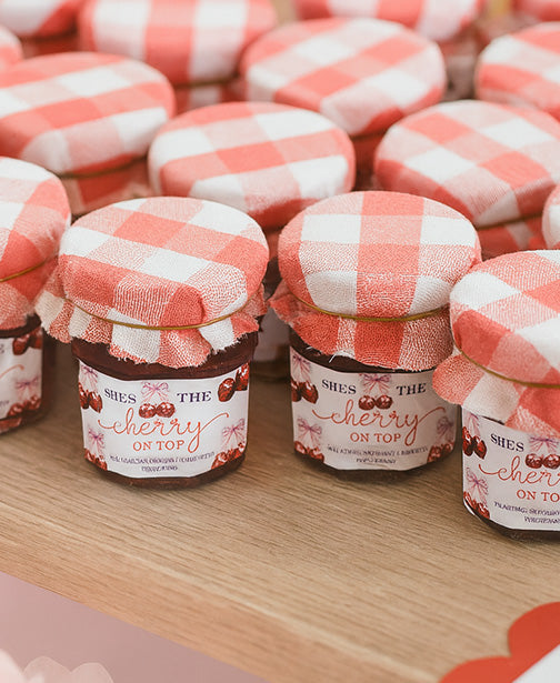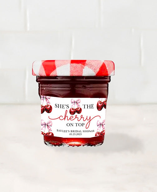 1 reviewShe's the Cherry On Top Mini Jam Jar Stickers, Cherry Party Favor Stickers, Cherry Jam Jar Labels, Bridal Shower, Jars NOT INCLUDED These Personali...