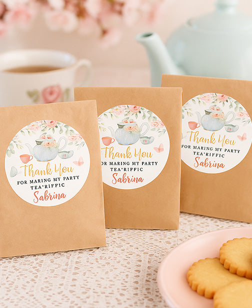 1 reviewAdd a charming touch to your celebration with these printed tea party stickers. Featuring a delicate watercolor teapot, teacups, and floral accents...