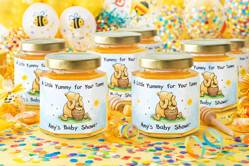 7 reviewsOriginal price $6.95 - Original price $6.95Original price$6.95$6.95 - $6.95Current price $6.95| /These Personalized Custom Sweet Classic Pooh Bear Baby Shower Honey Jar Stickers are easy peel and stick over your mini honey jars. A great way to ...