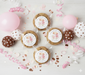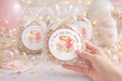 Perfect for coffee-inspired baby showers, these printed glossy stickers add a soft, feminine touch to favor bags, cookie packages, treat boxes, and party décor.