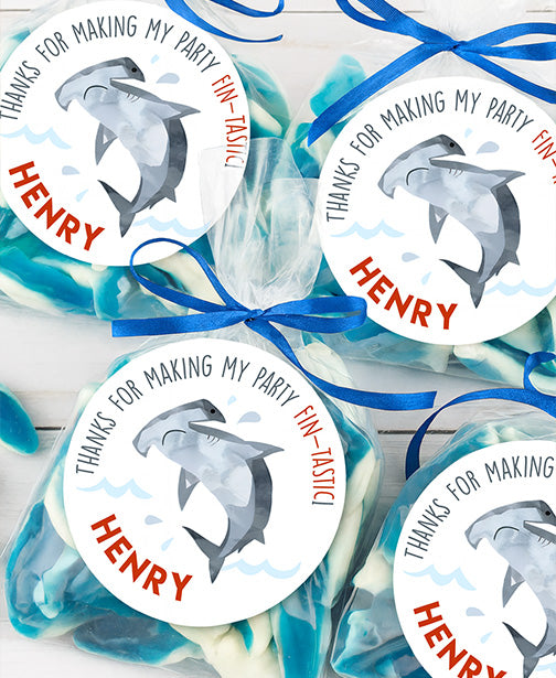 3 reviewsPersonalized Stickers Hammerhead Shark Birthday Party Stickers, Hammerhead Shark Thank You Circle Stickers, Custom Party Stickers These Thanks for ...