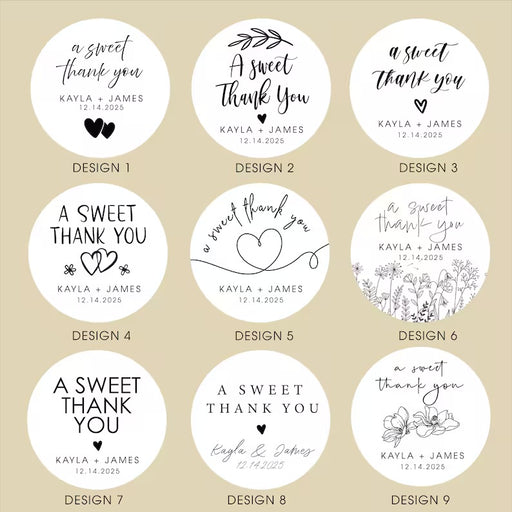 No reviewsOriginal price $6.95 - Original price $6.95Original price$6.95$6.95 - $6.95Current price $6.95| /Add a special touch to your favors with these A Sweet Thank You glossy round stickers — perfect for weddings, baby showers, bridal showers, engagem...