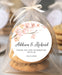 cherry blossom wedding stickers, floral wedding favor labels, personalized thank you stickers, custom wedding date labels, spring wedding favors, blush floral wedding stickers, romantic wedding decor, bridal shower favor stickers, engagement party labels, custom cookie bag labels, wedding favor seals, flower wedding thank you labels, personalized round wedding stickers, watercolor cherry blossom labels
