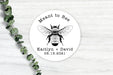 Each sticker features a classic bee illustration with your custom names and date, printed in high quality on your choice of white glossy or brown kraft paper for two beautiful styles: